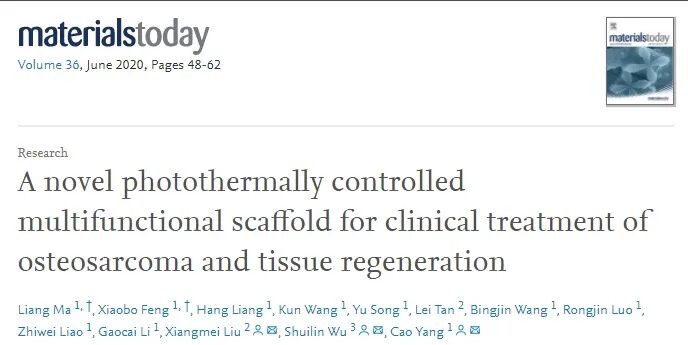 用于骨肉瘤臨床治療和組織再生的新型光熱控制多功能支架