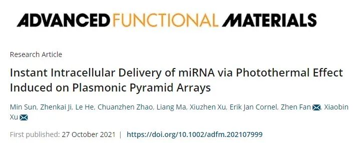 通過光熱效應在等離子體金字塔陣列上誘導的細胞內快速有效地遞送miRNA