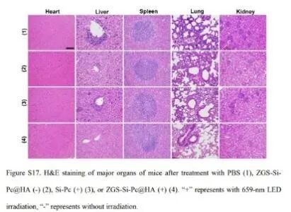 中國科學院張云教授團隊基于長余輝材料持續發光這一特性,合成了一種納米免疫刺激劑ZGS-Si-Pc@HA,在用生物窗(659nm)LED光照射后可持續誘導ROS產生,通過觸發DC成熟和細胞因子分泌,直接殺死腫瘤細胞并刺激免疫反應,從而增強ICD并激活免疫系統。同時,ZGS-Si-Pc@HA有效地減輕了免疫耐受并促進了CTLs的瘤內浸潤。與抗PD-L1檢查點封閉療法相結合時,通過誘導強烈的抗腫瘤免疫反應,在消除原發性和遠處腫瘤方面產生了顯著的協同效應。其介導的連續ICD聯合PD-L1阻斷誘導的長期免疫記憶效應可能有助于預防腫瘤復發。