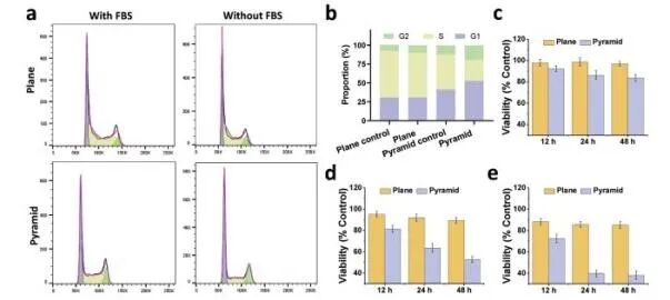 同濟大學許曉斌教授團隊通過結合光熱效應、細胞粘附和物理穿刺,設計制造了等離子金字塔陣列,促進miRNA 快速地遞送至耐藥性食管癌細胞內。在激光(≈8μs @640 nm)刺激下,等離子體金字塔可產生瞬時高溫(≈470°C),導致細胞膜上產生瞬時孔隙。移除激光刺激的≈150 μs內,金字塔的溫度迅速降至≈37°C,瞬時孔隙會很快恢復,以避免細胞損傷。