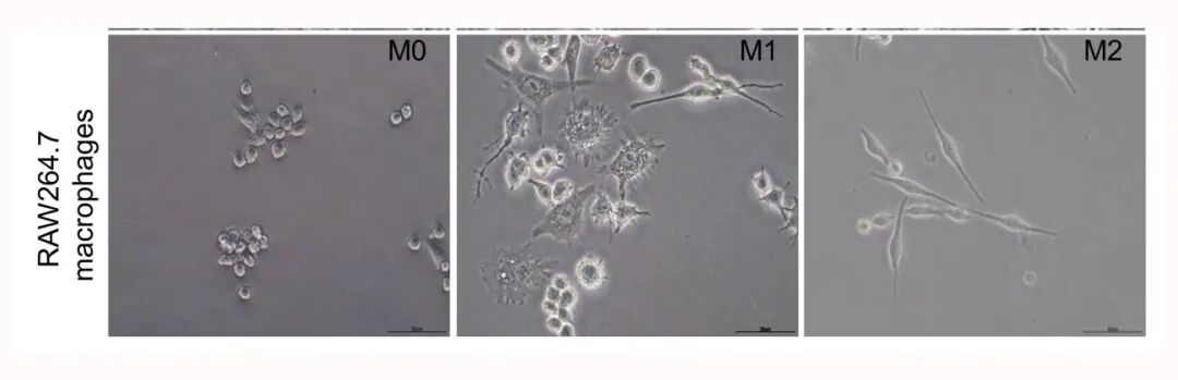 細菌和脂多糖(LPS)可以誘導巨噬細胞向M1型分化,產生促炎細胞因子,抵抗病原入侵,但也會造成機體損傷,在實驗中可采用2.5ng/mL IFN-γ和200ng/mL LPS共同作用12小時誘導其極化;