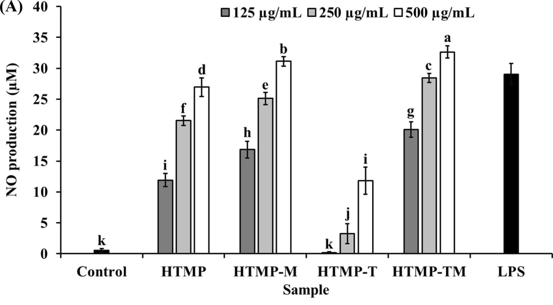 圖6. 不同樣品對RAW 264.7中NO產生的影響