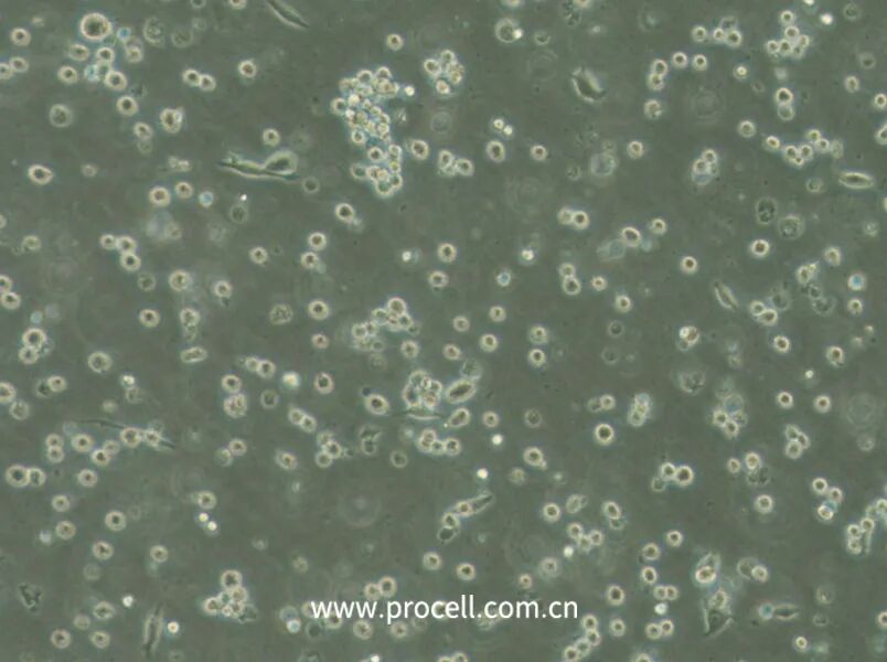 該細胞為半貼壁半懸浮細胞,其中貼壁細胞較少或到50%均為正常,可以按懸浮細胞的培養方式傳代,貼壁部分吹下即可(如遇吹不下來,可用0.25%胰酶適當消化);
