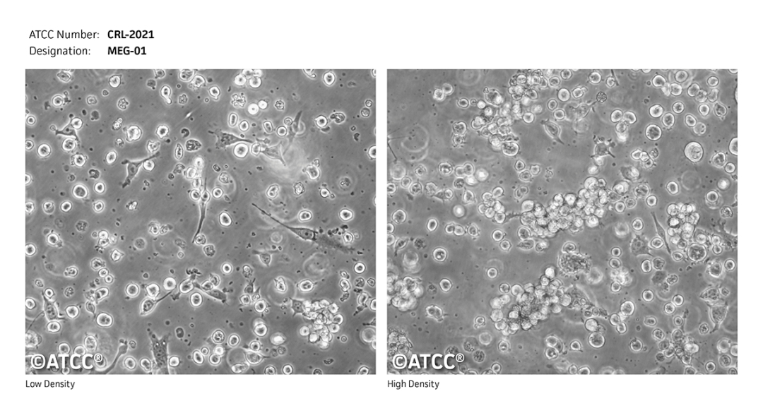 MEG-01不僅為研究人類巨核細胞分化和成熟提供研究模型,而且為血小板或蛋白質如FVIII相關抗原、血小板糖蛋白或血小板衍生生長因子(PDGF)等的產生和釋放提供一種有用的研究模型。
